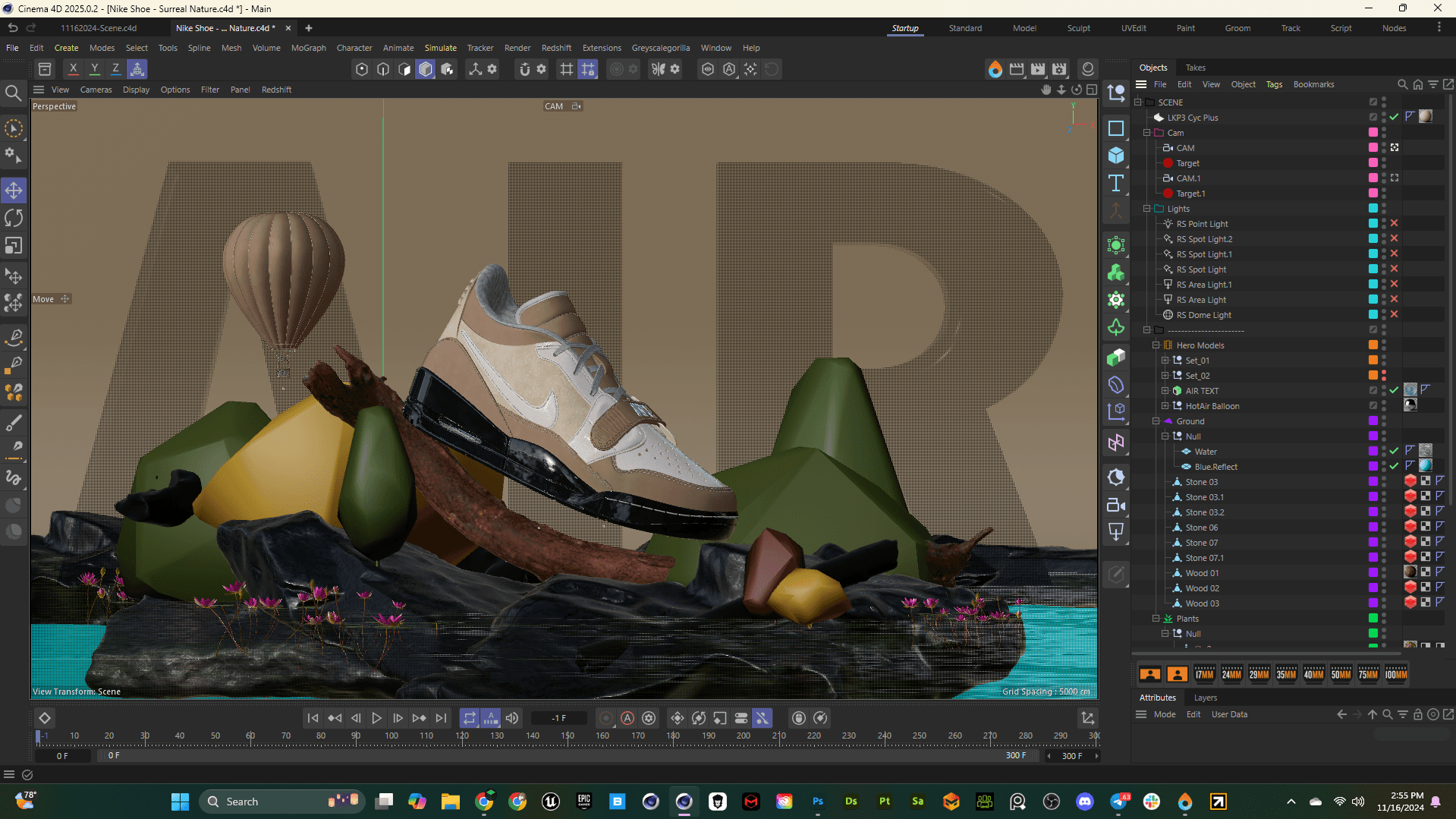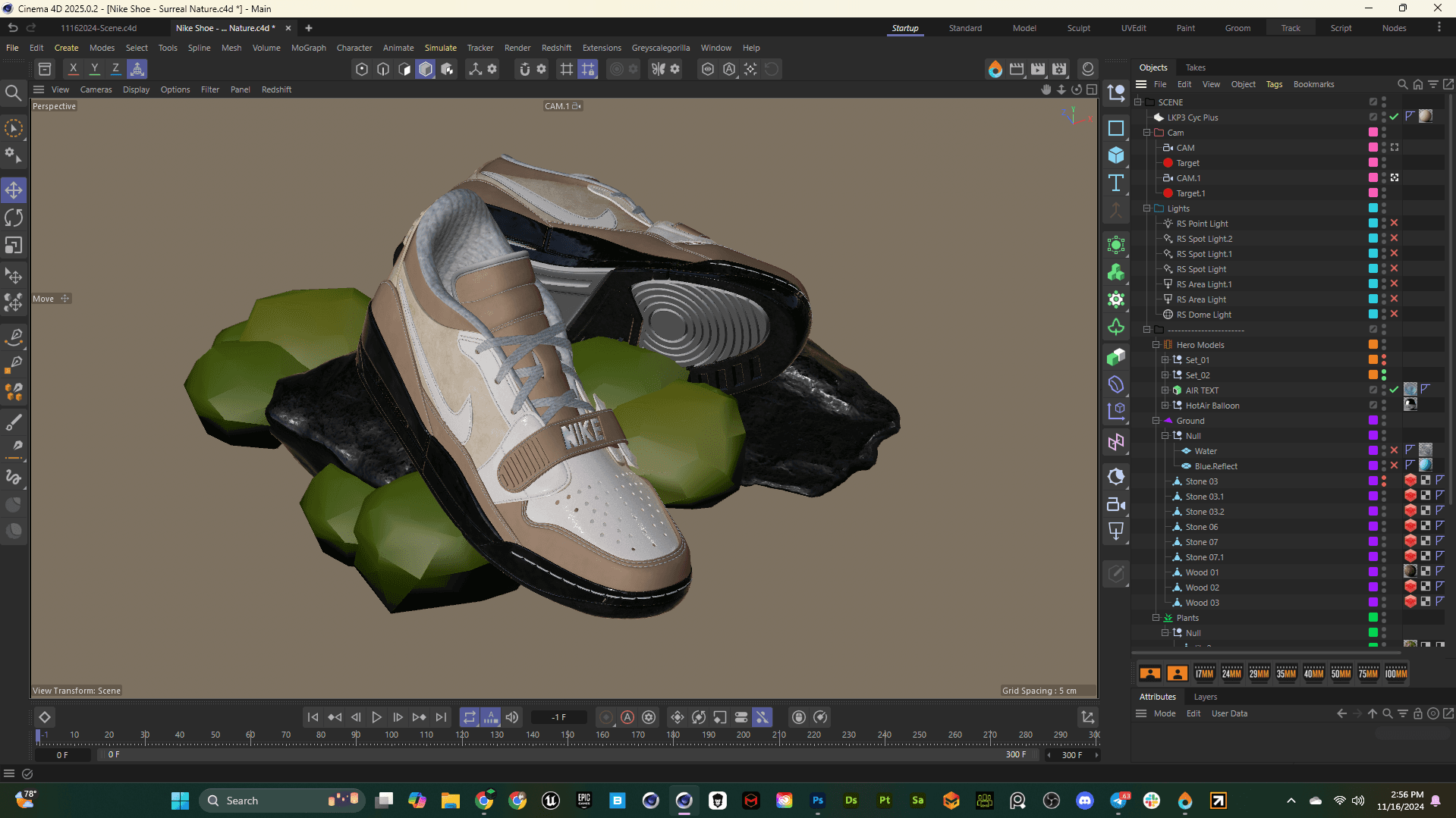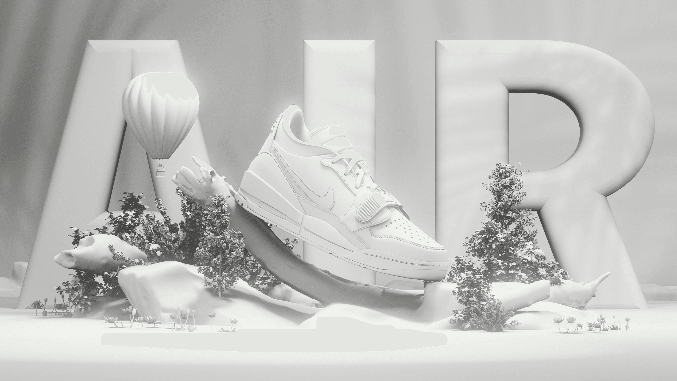 All elements were assembled in Cinema 4D 2026.1, with an emphasis on clean hierarchy and readability inside the scene file. The shoe remains the hero, while environmental assets support it without competing for attention.